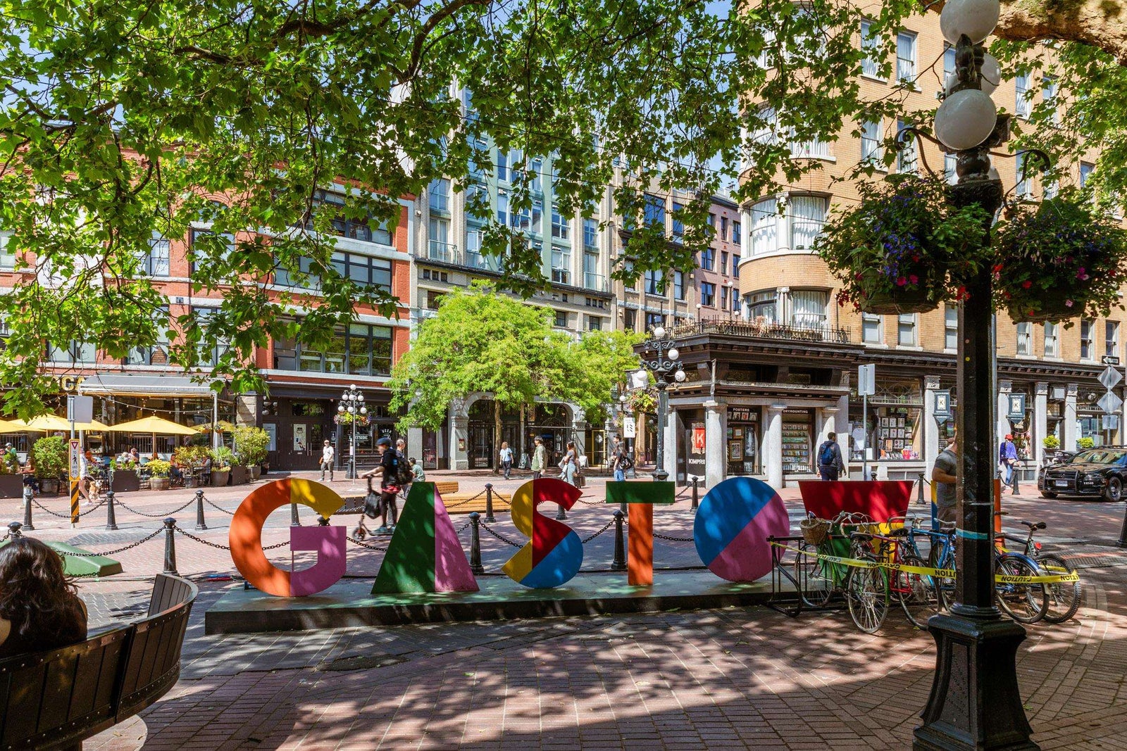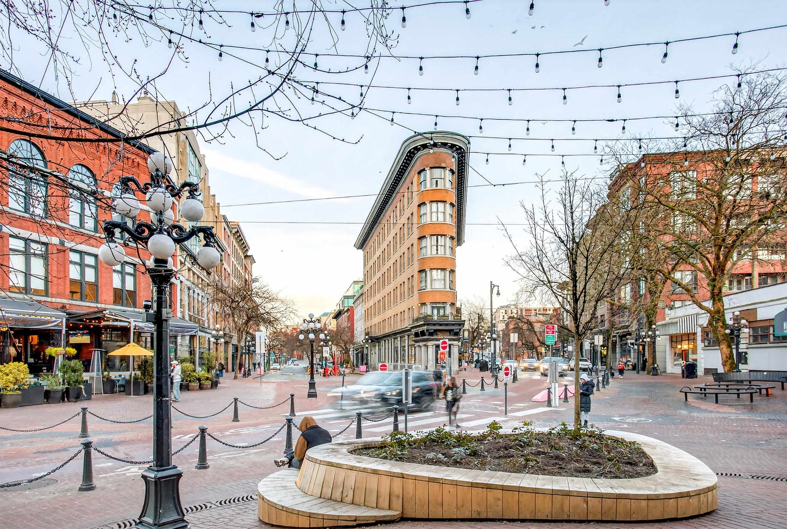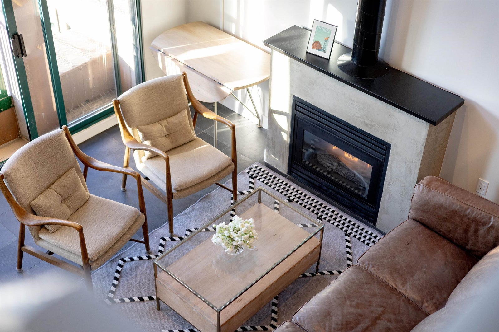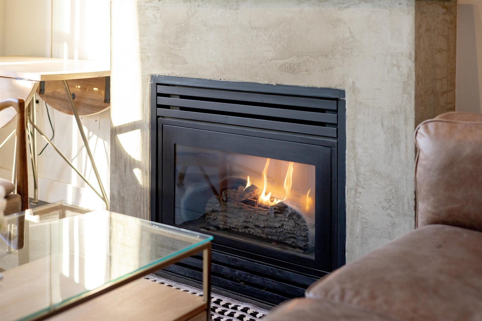 Welcome to this STUNNING PENTHOUSE 1-bedroom, 2-level Loft in the iconic Van Horne building in historic Gastown. 16-ft ceilings + oversized windows flooding the home w/ natural light + OCEAN, North Shore mountain + city views! Reno'd kitchen white cabinetry, Caesarstone countertops & new S/S appliances. Updated bathroom. Unique concrete floors, custom automatic blinds & a dramatic double-height living area create a sleek modern NYC loft vibe. Exclusive to Penthouse units: gas fireplaces + skylights. Well-maintained concrete building w/ new roof (2025). TWO secure parking stalls, bike storage, visitor parking - RARE for Gastown. Pet & Rentals OK. Steps to Vancouver's best restaurants (half block to Local), cafes, shopping & nightlife, Skytrain, Convention Cntre. EASY TO SHOW, call ur agent!